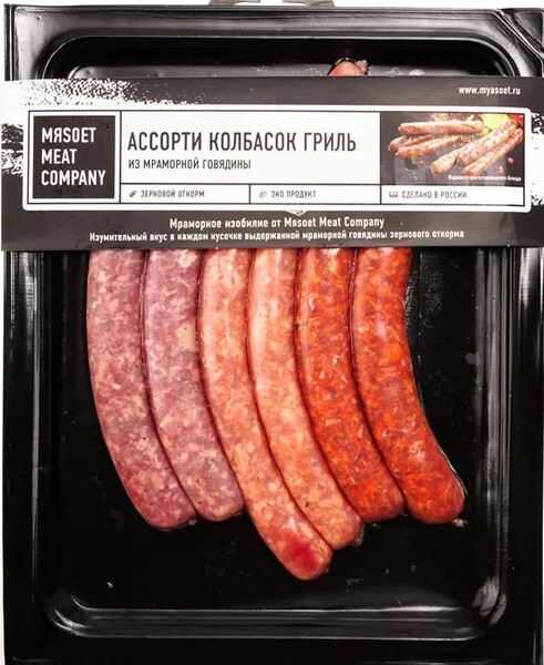 Ассорти колбасок гриля из мраморной говядины с премиальным ягненком 330г, Мясоет, зам
