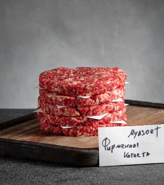 Фирменная котлета для Бургера из мраморной говядины зернового откорма.
