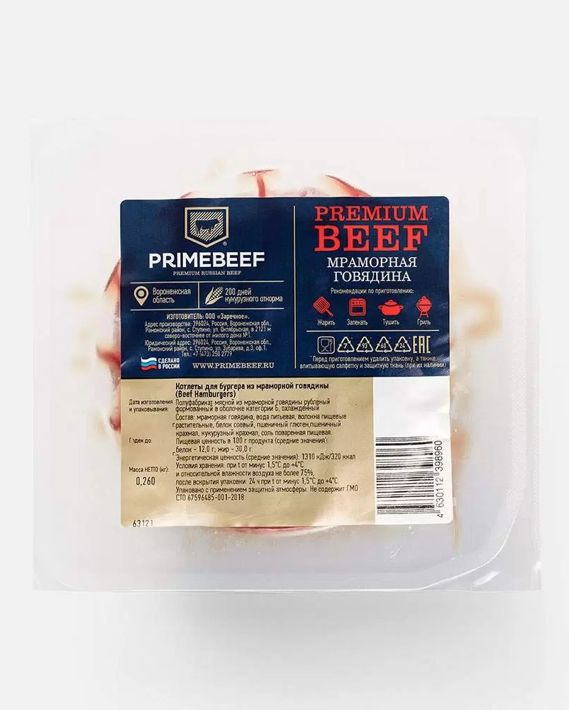 Котлеты для бургеров 70/30, Праймбиф, зам, шт