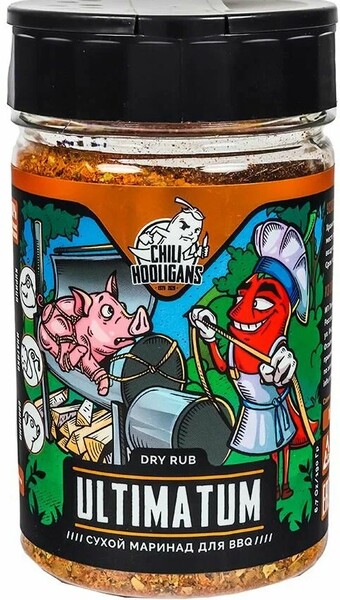 Сухой маринад «Ультиматум» от Chili hooligans – это идеальный выбор для тех, кто ценит насыщенный вкус и аромат в своих блюдах. Эта смесь приправ сочетает в себе органически подобранные специи и перец чили, которые добавляют остроты и пикантности, позволяя готовить блюда, которые запомнятся.